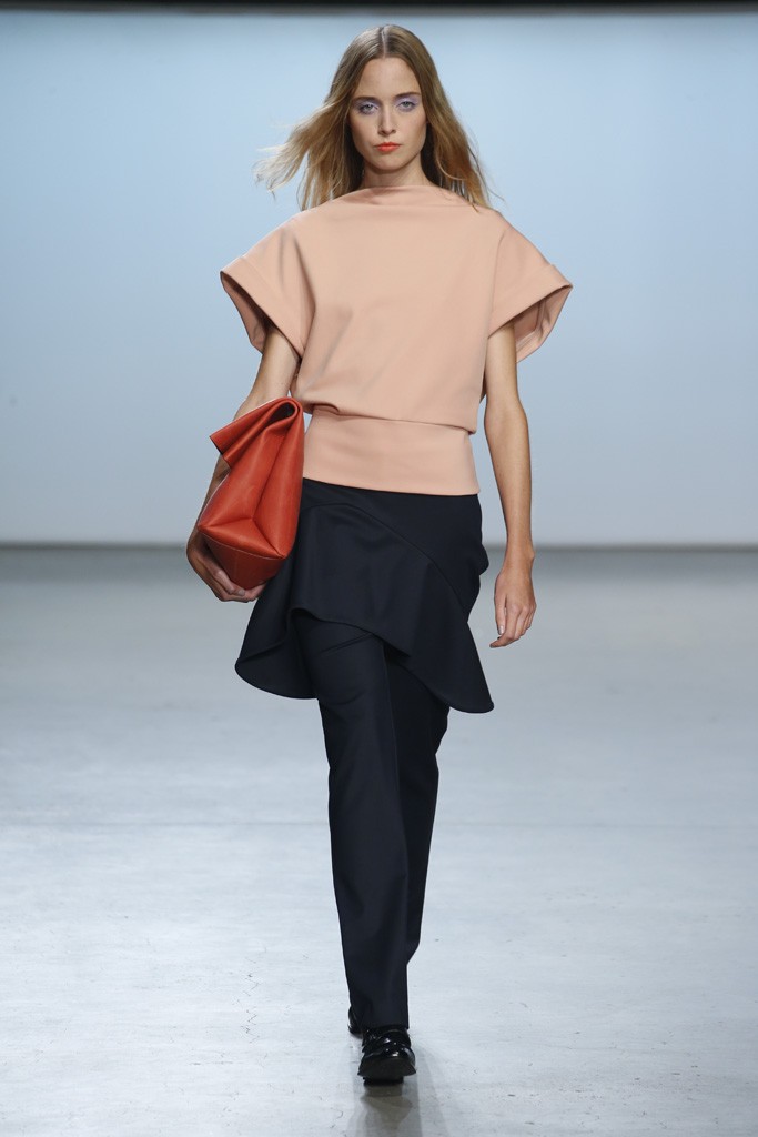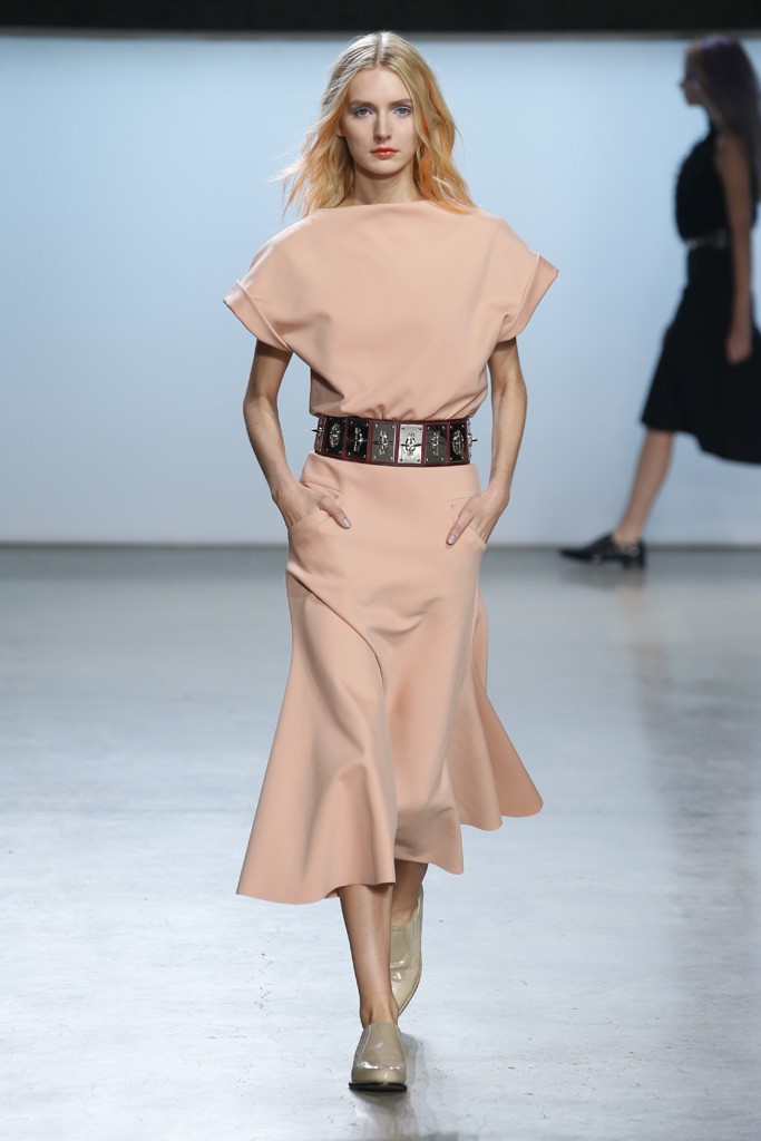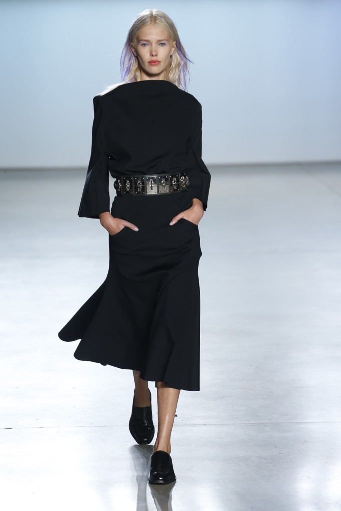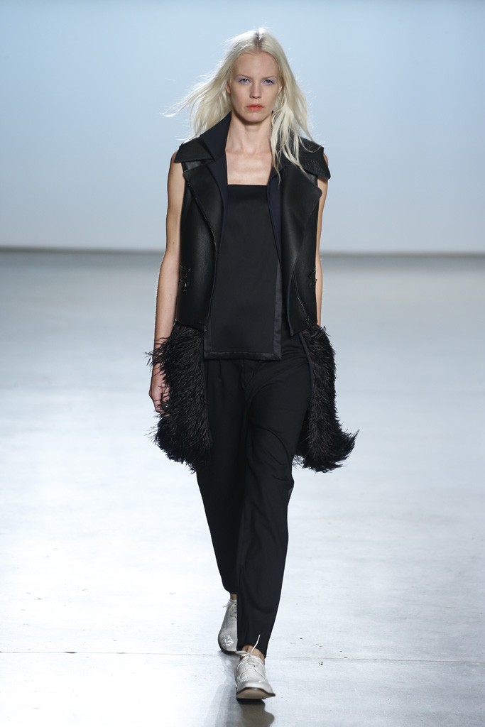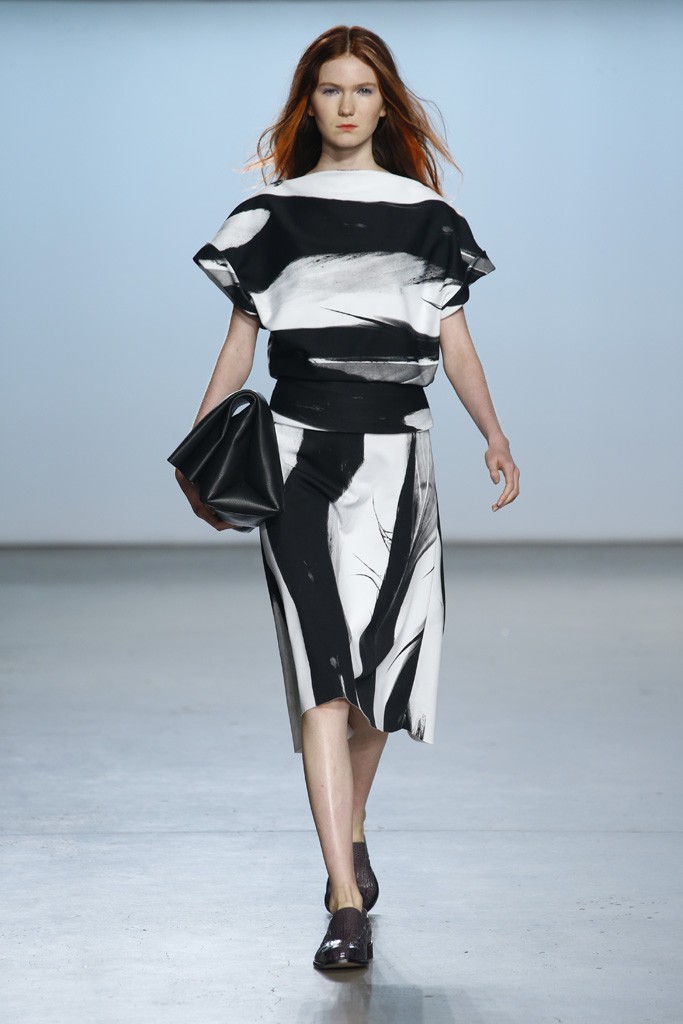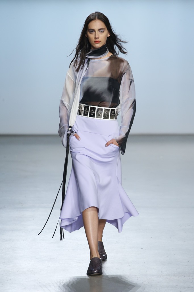 Straying from the seasonal stereotypical, designer Ms. Sally LaPointe went to trod her own path to make Spring|Summer 2015 sans a plethora of hues or florals. Instead, she went for more chic: a color palette of black and white. Taking inspiration of a conservative and classic goddess, Ms. LaPointe designed a majority of the collection with no exposure of the neckline, however, then turned liberal and modern at the sheer shirts and dresses.